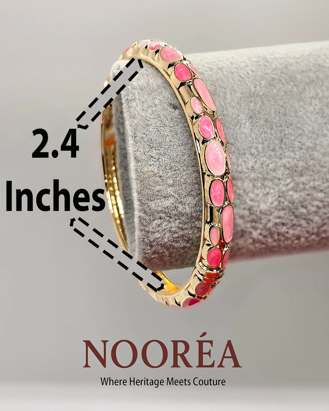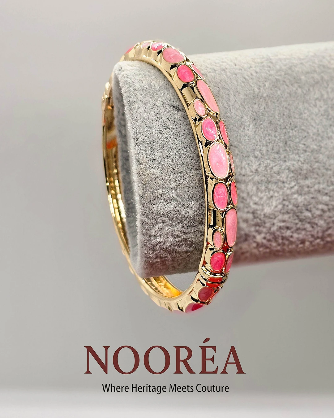 Bright and feminine, the Nooréa Coral Charm Cuff features coral enamel detailing framed by smooth gold tones. Its openable free-size design (2.4 inches) ensures ease, style, and long-lasting comfort.