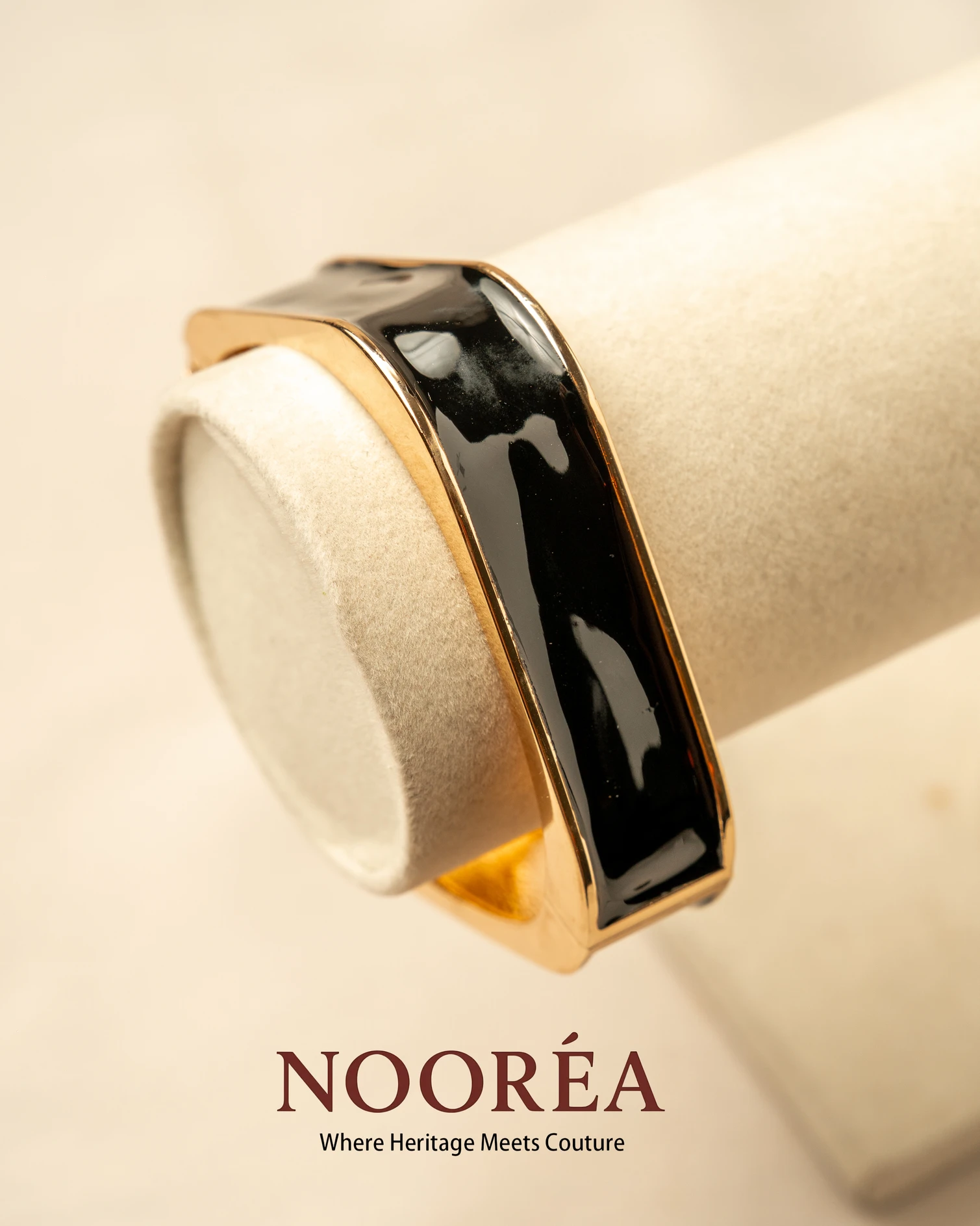 The Ebony Chic bangle is all about minimalism with class. Its glossy black enamel paired with golden trims makes it suitable for formal wear, modern styling, and daily glam.