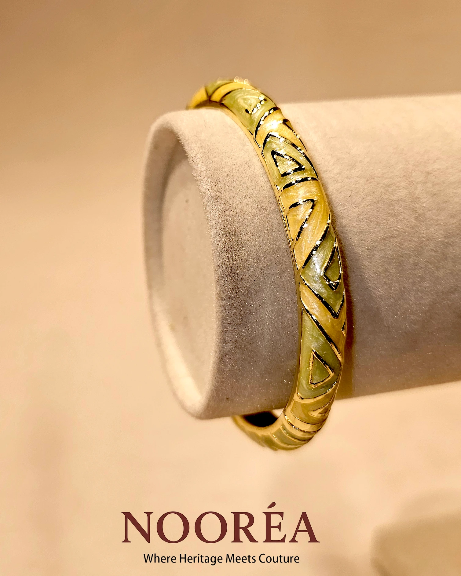 The Golden Blossom Bangle celebrates timeless beauty with a golden frame and subtle floral patterns, making it ideal for weddings and festivities.
