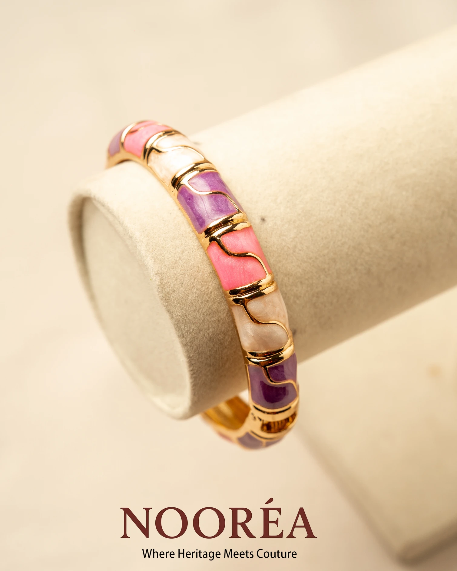 Pink-toned enamel with golden touches.