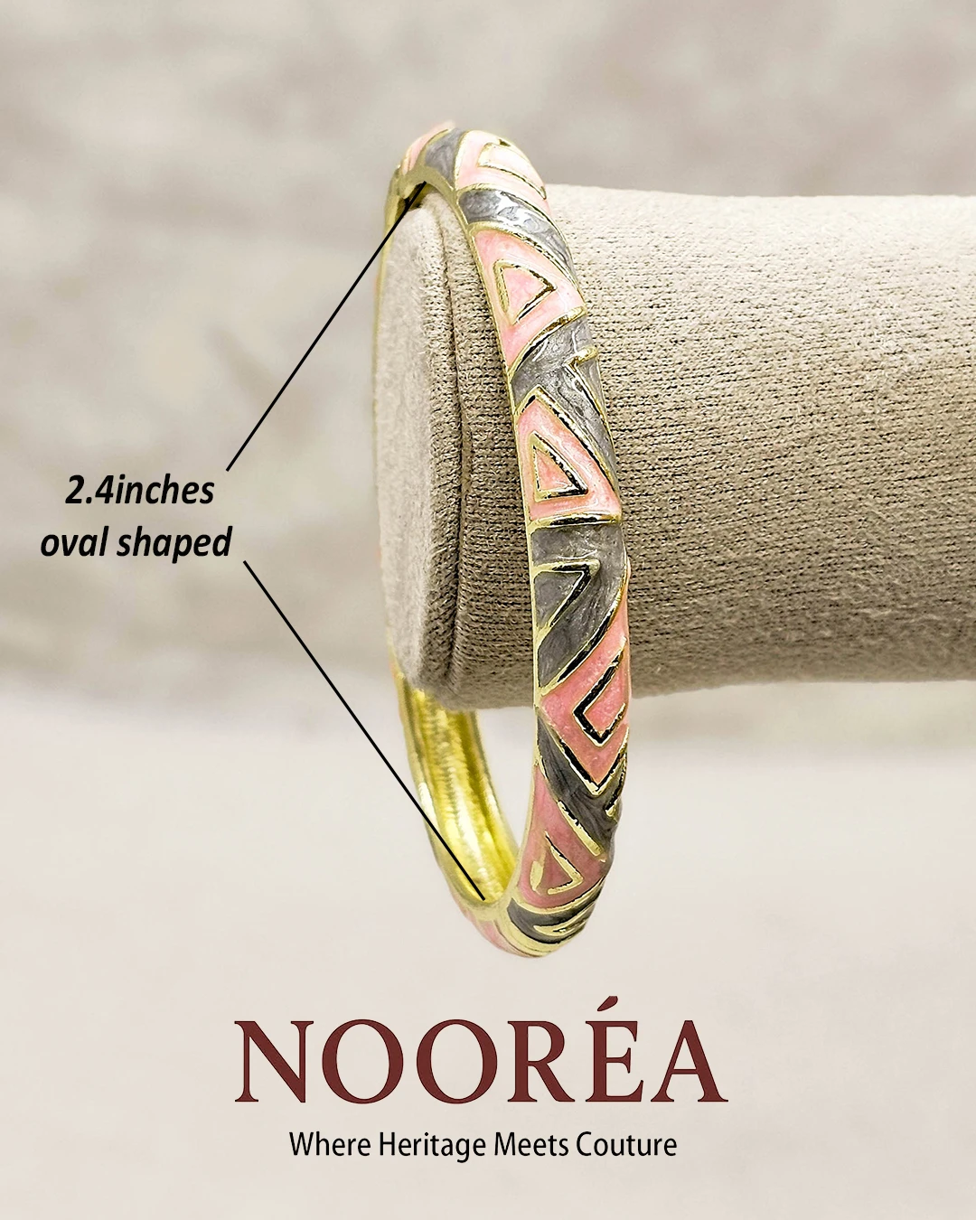 The Sahara Bloom Bangle brings together subtle earthy tones with delicate floral artwork, offering a graceful and refined aesthetic. Crafted with a polished golden inner finish and smooth edges for comfortable wear, this bangle is ideal for women who appreciate timeless charm with modern simplicity. Perfect for daily styling or as a statement accessory to elevate any outfit.