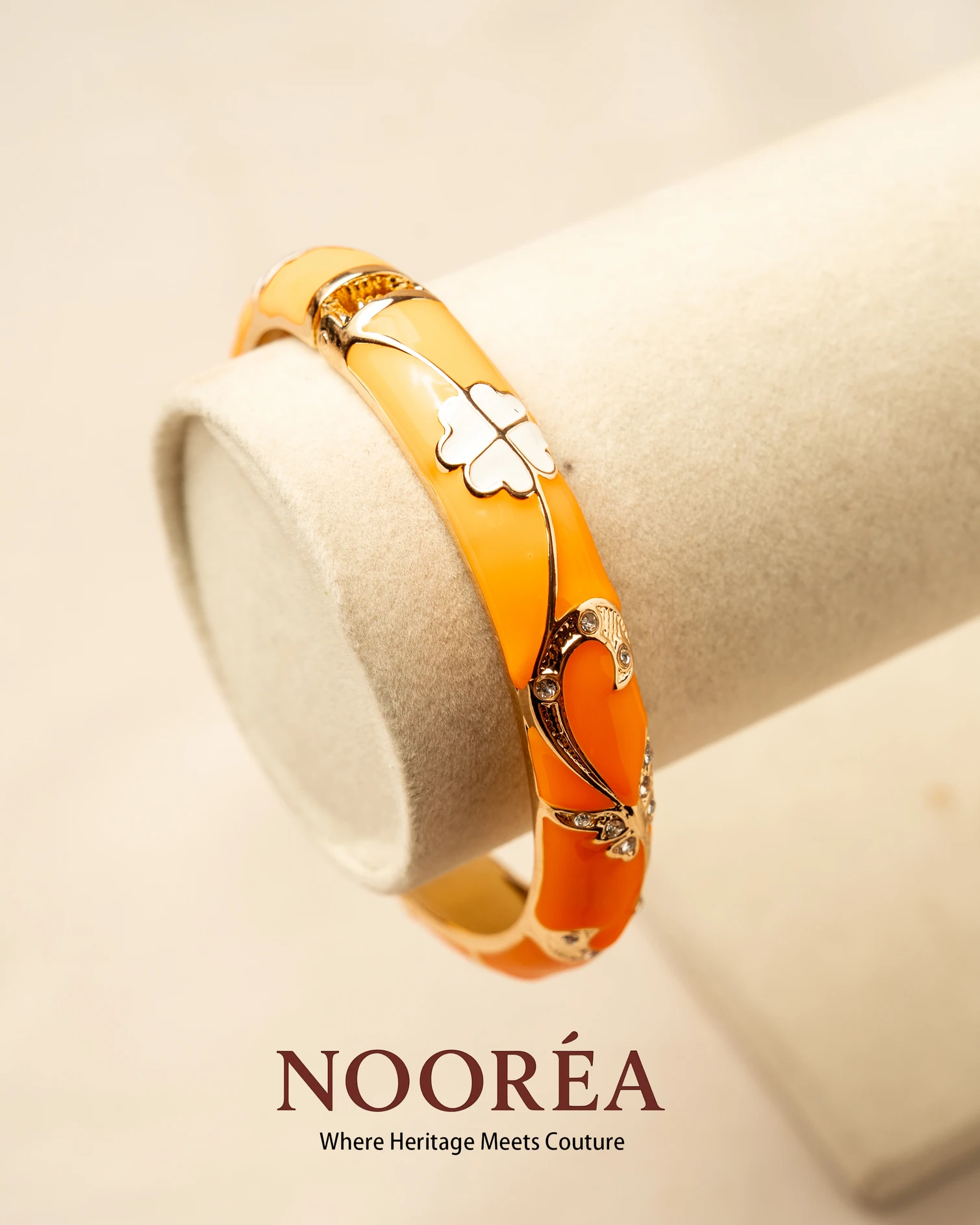Bright and joyful, the Sunshine Bloom bangle brings positivity to any look. Crafted with warm yellow enamel and delicate gold flowers, it’s perfect for summer wear, festivals, and vibrant traditional outfits.