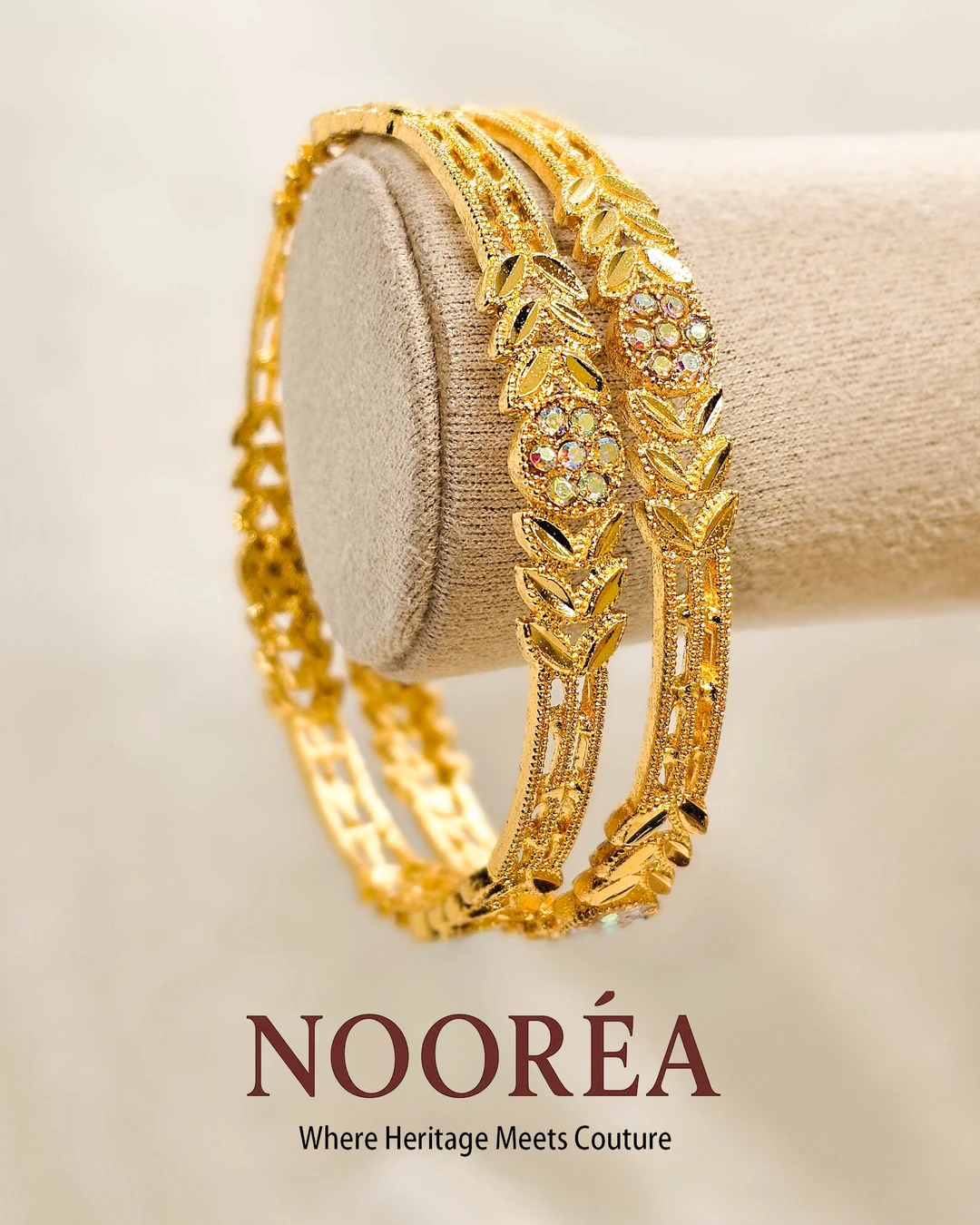The Yasmin Floral Heritage Bangle showcases expressive floral motifs crafted to stand out. Its artistic design makes it perfect for special occasions and celebrations. A statement piece that blends cultural inspiration with refined craftsmanship.